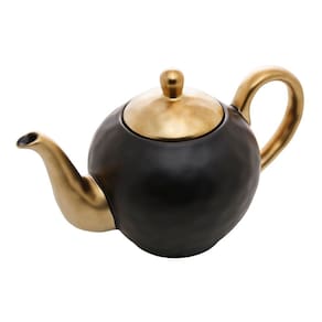 Bule Para Café/Chá de Porcelana Preto Fosco/Dourado Dubai 1 Litro Wolff
