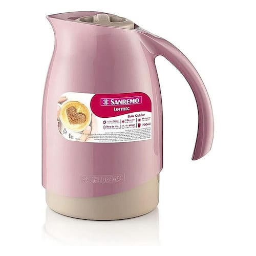 Bule termico plástico rosa cuidar 700ml sanremo sr10113 O bule térmico com design elegante, alça ergonômica, tampa rolha e bico direcionador anti pingo. É um produto resistente, superfície polida e brilhante.