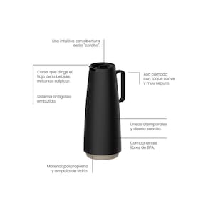 Bule Térmico Tramontina Exata em Polipropileno Preto com Ampola de Vidro 1 L