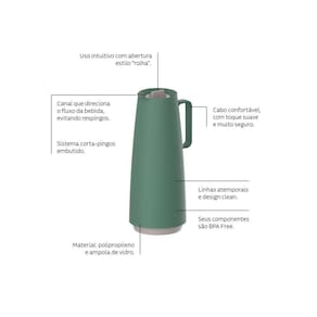 Bule Térmico Tramontina Exata em Polipropileno Verde com Ampola de Vidro 1 L