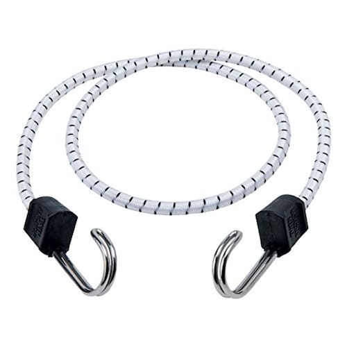 KEEPER 101,6 cm. O cordão elástico Marine Twin Anchor é construído a partir de materiais de qualidade para versatilidade e confiabilidade duradoura. É projetado com uma jaqueta externa durável para suportar raios UV e danos climáticos. A borracha interna premium proporciona desempenho e elasticidade ideais para uso repetido. O cabo elástico é equipado com ganchos de fio duplo de aço inoxidável e uma aderência moldada para força adicional.