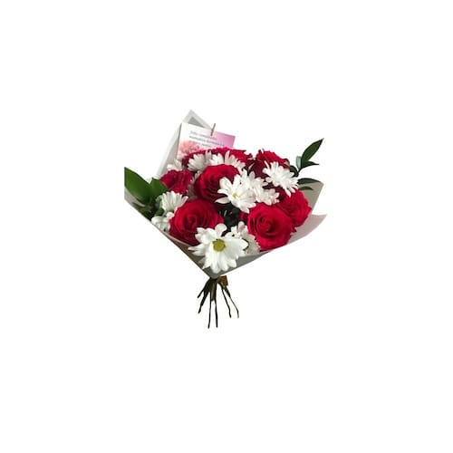 Ramo de 10 Rosas y MaulesFlores lesOpcional, tarjeta con mensaje (indíquelo) sin costo adicional.Opcional, cinta de tela grabada con nombre (indique nombre) sin costo adicional.Todo envuelto en un hermoso papel