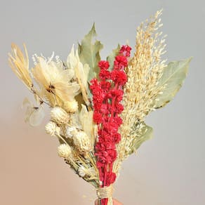 Todos os nossos arranjos e buquês são criados com flores naturais desidratadas artesanalmente. Por ser um processo manual, isso garante que cada arranjo seja único em sua composição.