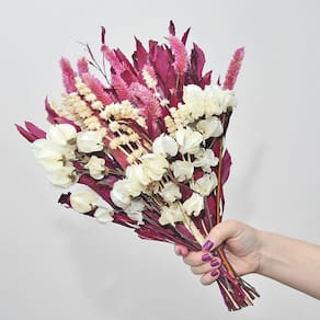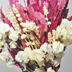 Todos os nossos arranjos e buquês são criados com flores naturais desidratadas artesanalmente. Por ser um processo manual, isso garante que cada arranjo seja único em sua composição.