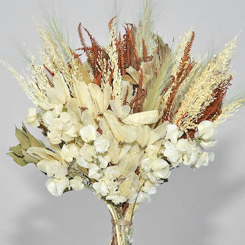 Todos os nossos arranjos e buquês são criados com flores naturais desidratadas artesanalmente. Por ser um processo manual, isso garante que cada arranjo seja único em sua composição.