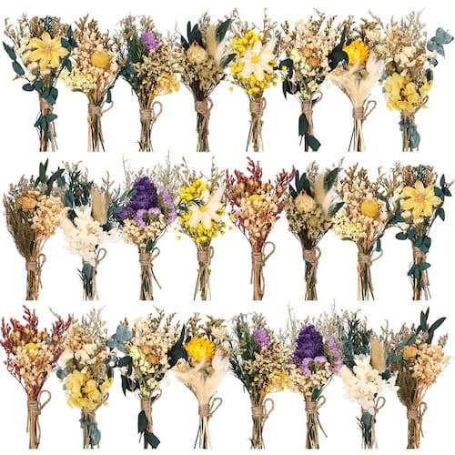 Características: Artesanato sincero: Estes mini buquê de flores são preparados usando apenas as flores e plantas secas naturais. Eles não têm odores e coisas desagradáveis, são seguros e confiáveis de usar. Pacote completo: Cada pacote inclui 24 mini pacotes de flores secas. Estes pacotes de flores secas prontos para usar oferecem uma maneira fácil de elevar a decoração da sua casa ou eventos comemorativos enquanto economiza tempo e esforço. Especificações: Material: flores e plantas Cor: como mostrado na imagem. Tamanho: como mostrado na imagem. A embalagem inclui: 24 x mini pacote de flores secas Observações: Medição manual, permita pequenos erros no tamanho. A cor pode existir uma ligeira diferença devido a diferentes ecrãs. Pode haver risco de engolir, por favor, fique longe de crianças pequenas. - Coleção abundante e versátil: você receberá 24 buquês secos que são bonitos e enérgicos em e estilos; Esta quantidade abundante garante que haja muito para o seu uso diário, substituições e aplicações decorativas variadas; Esta coleção combina com os gostos de diferentes pessoas, tornando seu casamento boêmio ou projeto de decoração de casa mais alegre e refrescante; Nota: você pode usar um secador de cabelo por cerca de 5 minutos para obter uma flor completa - Natural e Estética: cada flor seca no pacote é feita à mão a partir de flores e plantas secas naturais, resultando em cada buquê sendo ligeiramente requintado em sua maneira; Com nossos produtos, você pode desfrutar do apelo estético de flores e plantas orgânicas e inodoras com confiança - Variedade e tamanho diversos: nossos mini buquês de flores secas apresentam quase 20 tipos de flores e folhas secas, como junco, aveia, anis, grama do amor, hortênsia, flor feliz, cártamo, painço e muito mais; Cada mini buquê mede aproximadamente 12,7 a 17,8 cm, adequado para decorações de pequenos espaços; apesar de seu peso leve e tamanho pequeno, esses buquês incorporam a beleza da natureza - Opção de presente ideal: envie palavras sinceras com nossos pequenos feixes de flores secas como presente; seja um aniversário, aniversário ou outro feriado, esses feixes de flores são uma escolha ideal para expressar seus sentimentos; O ato de presentear esses lindos buquês certamente aproximará você e o destinatário - Dicas de uso e cuidados versáteis: estes buquês secos são ideais para casamentos boêmios, decoração de casa, projetos de bricolage e muito mais; Como são flores secas naturais com desenhos feitos à mão, uma pequena variação de tamanho e cor da imagem exibida é normal, mas tenha certeza, seu apelo estético geral permanece constante