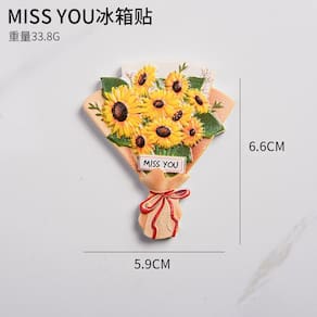Material: Resina Tamanho: 5,9 x 6,6 cm Peso: 34G Ímã de geladeira de resina 3D realista com um buquê de girassol vibrante com a mensagem “Sinto sua falta”, perfeito para expressar amor e carinho. Detalhes intrincados e cores brilhantes dão vida a este lindo arranjo de girassóis com um design charmoso e criativo. Ideal para decorar sua geladeira, armário ou escritório com um toque de frescor floral e diversão, ao mesmo tempo em que adiciona um sentimento pessoal. Leve (34 g) e tamanho compacto (5,9 x 6,6 cm), facilitando a colocação em qualquer superfície magnética sem problemas. Uma adição atenciosa e doce à decoração da sua casa, perfeita para espaços de cozinha ou uma linda surpresa para seus entes queridos.