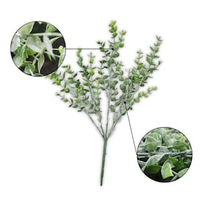 Cinco galhos de eucalipto artificial com 35cm de altura cada, perfeitos para arranjos e composições diversos.