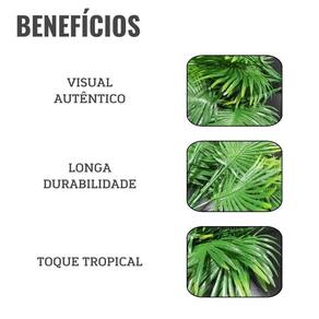 Com design realista, as flores artificiais reproduzem fielmente a palmeirinha, adicionando charme e vida ao espaço;
