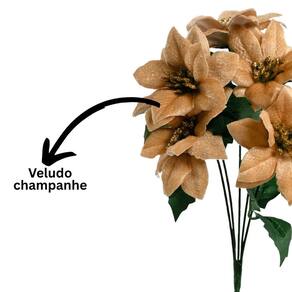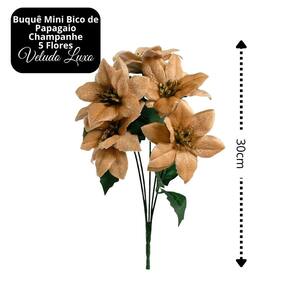 Buquê Natalino Mini Bico de Papagaio Veludo Champanhe com 5 Flores – 30cm
