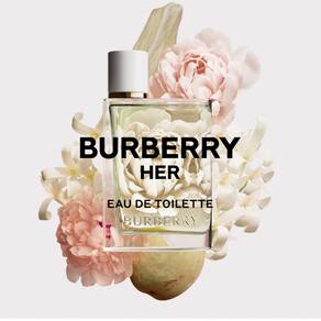 Burberry Her Eau de Toilette de Burberry é um perfume Floral Frutado Feminino. Esta é uma nova fragrância. Burberry Her Eau de Toilette foi lançada em 2022. As notas de topo são: Pera, Morango, Groselha Preta e Pimenta Rosa. As notas de coração são: Peônia, Rosa, Lírio-do-Vale e Madressilva. As notas de fundo são: Almíscar e Cedro.