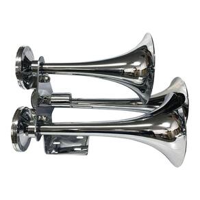 BUZINA AR 3 CORNETAS CROMADA C/ VALVULA BIVOLT CAMINHÃO