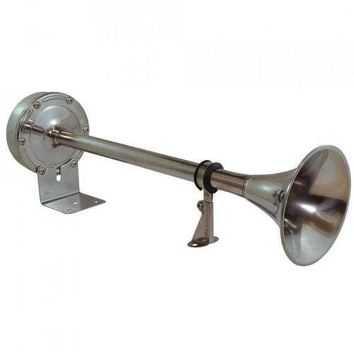Buzina Em Aço Inox 12V Tipo Corneta Som Grave 120 Decibéis Buzina marítima de tipo coreta em aço inox Buzina marítima tipo corneta, marinizada de 120 decibéis de alcance. Em aço inoxidável para todas, todas as peças para desenvolvidas para utilização em água salgada. Adequado para barcos, carros, caminhões, onibus, motorhome e motos. Informações adicionais Construção: aço inox Dimensões: 362 x 97mm Acionamento: não acompanha o produto Alimenação: 12v Modelo: hyf-305ltp Itens inclusos 01 buzina inox tipo corneta Marca: Não Informado