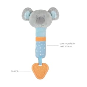 Possui buzina interna que funciona quando o bebê aperta, estimulando seus sentidos. O mordedor na ponta tem texturas para estimular o tato e é livre de Bpa para segurança dos pequenos.