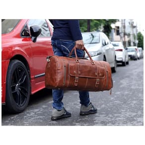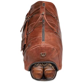 Alça de ombro destacável. Dimensões aproximadas 71 x 27 x . Profundidade em polegadas aprovado pela maioria das Major Airlines como mala de cabine. Pregos de metal na base protegem o couro.