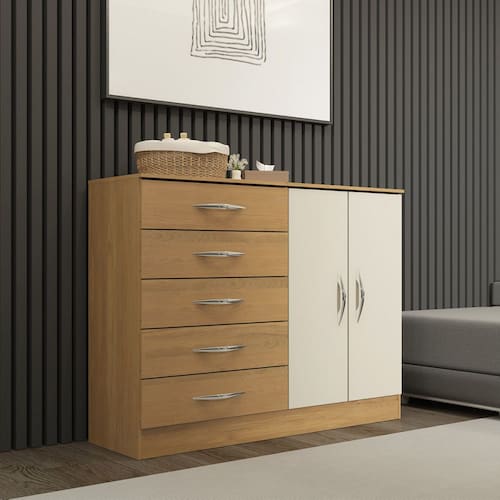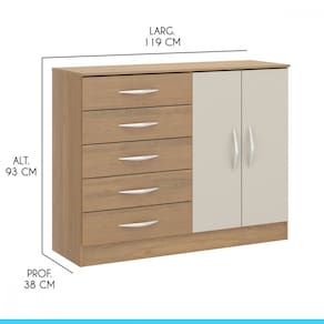 A C?moda foi desenvolvida pensando em atender todas as suas necessidades do dia a dia com um design atual, unindo versatilidade, conforto e beleza. Possui cinco gavetas e duas portas que s?o perfeitos para manter tudo organizado. Produzido com materiais de excelente qualidade, garantindo a sua durabilidade. O melhor em m?veis no design atual aliando conforto, qualidade e ?timos pre?os!