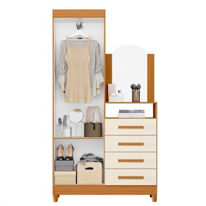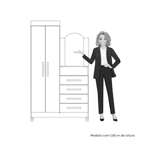 O m?vel conta ainda com p?s que proporcionam firmeza e estabilidade, al?m de um espelho com topo curvo, que valoriza o design e traz mais charme ao ambiente. Uma pe?a vers?til que organiza seu espa?o com praticidade, sem abrir m?o do estilo.