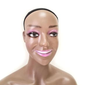 Cabeça de boneca para expor com ombro peruca sorrindo Cor: branca id Cabeça de manequim expositor cherey Cabeça de manequim feminino realista para exposição de perucas, chapéus, óculos, maquiagens ou venda e divulgação de outros produtos. A cabeça de manequim para: - mostruário de perucas; - de óculos; - de chapéus; - de lenços etc Produto com acabamento de alta qualidade.