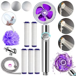 Hydro Shower Cabeça de jato de alta pressão Cabeça de chuveiro de hidrojato Prope-ller Driven Vortex cabeça de chuveiro portátil 3 painéis substituíveis para uma experiência diferente de chuveiro. Rotação livre de 360°. Ângulo de banho com autocontrole. turbofan embutido, pressurização potente. Misture totalmente água quente e fria para proteger a pele. Design destacável, fácil de limpar, sem bloqueio. Parada de água com uma chave, não é necessário ajustar repetidamente a temperatura. Com elemento de filtro, filtro eficaz de algodão 100% PP que filtra a maioria das impurezas da água pode filtrar impurezas. Fácil instalação: O pacote inclui uma cabeça de chuveiro, mangueira antiexplosão de 150 cm, um suporte de braço de chuveiro, 4 peças de filtros de algodão extra limpos, fita PTFE, uma capa de massagem de silicone e uma bucha de banho - [Chuveiro filtrado de alta pressão com 3 painéis substituíveis] Chuveiro portátil com hélice de pressão turboalimentada. O design do micro bocal torna os orifícios de saída menores e o turbofan acelera a velocidade do fluxo de água, aumentando a pressão da água e economizando água. Fornecemos 3 painéis de água diferentes, a água sai e forma uma forma bonita, para que você possa ajustar sua configuração de spray de acordo com sua necessidade, cada modo pode trazer uma água fina, densa e suave que faz seu corpo se sentir relaxado - [Filtros bons para sua pele e cabelo] Nosso chuveiro filtrado com função de filtragem atualizada. O filtro de algodão limpo pode efetivamente remover impurezas na água, como sujeira e metais pesados, e o chuveiro turbo protege a saúde e a segurança da pele da sua família. 4 peças de filtros de algodão extra são preparados para você. Recomendamos substituí-lo a cada 3 meses - [Rotação livre de 360 graus + ajustável] Este chuveiro de alta pressão de hélice de 360 graus é feito de ABS de alta qualidade e painel de aço inoxidável. Um design de pescoço giratório e cabeça rotativa de 360° pode atender às suas diferentes necessidades em qualquer ângulo. O chuveiro Turbo tem um interruptor de pausa independente + um botão para ajustar o tamanho da água. É mais conveniente ligar ou desligar a água quando você usa nosso chuveiro de hélice e os chuveiros vortex para economizar água ao mesmo tempo - [Ampla aplicação] Você pode usar este chuveiro Besititli para lavar o cabelo, tomar banho, dar banho em seus filhos, lavar seu cão e até mesmo usar o chuveiro vortex para dar descarga no vaso sanitário o quanto quiser, homens, mulheres ou crianças para relaxar após um dia difícil com um chuveiro de chuva relaxante, o chuveiro turbo spa é a melhor maneira de trazer um pedaço de luxo de spa para sua casa - [Fácil instalação] O pacote inclui uma cabeça de chuveiro, mangueira antiexplosão de 150 cm, um suporte de braço de chuveiro, 4 filtros de algodão extra limpos, fita PTFE, uma capa de massagem de silicone e uma bucha de banho. A rosca universal G1/5.1 cm se encaixa em qualquer tubo de chuveiro padrão, braço, extensor ou filtro, sem encanador e conexão sem ferramentas, componentes destacáveis podem ser removidos e limpos facilmente. Qualquer dúvida sobre o chuveiro,