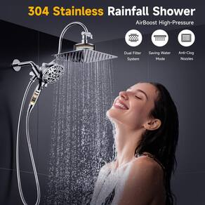 -?Combinação de chuveiro duplo de alta pressão?Inclui chuveiro de chuva quadrado de 8" e um spray portátil de modo 8+2. Nosso chuveiro de chuva de alta pressão se compromete a fornecer um banho suave e aconchegante, permitindo que você desfrute de uma experiência autêntica na floresta tropical e se sinta relaxado e rejuvenescido! O chuveiro de mão possui jatos de alimentação extras de 2 modos que podem limpar animais de estimação e banheiros facilmente.
