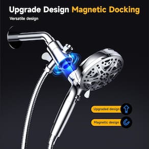 -?Atualize o chuveiro magnético patenteado?Em comparação com o chuveiro magnético comum, o chuveiro EBOATOP adota uma tecnologia de estrutura de fivela de combinação magnética de metal forte, que pode segurar seu chuveiro portátil com firmeza, garantindo uma incrível experiência de banho. (Nº de patente: US011857983B2 e USD1058751S)