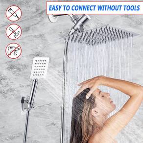 O chuveiro quadrado de chuveiro de 15 x 15 cm é feito de aço inoxidável, absolutamente à prova de ferrugem e durável, com um design de interface de bola giratória que pode ser ajustado para qualquer ângulo que você quiser, esta ferramenta de chuveiro definitivamente fornecerá a você uma experiência de banho em estilo hotel. A fadiga do dia desaparece lentamente no chuveiro, o que permite que você relaxe e reduza as preocupações e o desconforto em sua vida. Cada produto passou em nossos testes para evitar vazamento e garantir que funcionem adequadamente em qualquer situação. - Você receberá um chuveiro de chuva de 15 cm com spray portátil, mangueira de chuveiro de 200 cm, desviador de 3 vias, 4 arruelas, fita de teflon, suporte de chuveiro e 2 ganchos. Estes chuveiros são feitos de metal, não de plástico - Cabeças de chuveiro de alta pressão – Este chuveiro ajuda a melhorar a pressão da água, permitindo que você desfrute de uma experiência de chuveiro tipo spa. Ele vem com um desviador que permite alternar sem esforço entre 3 modos de chuveiro com apenas um giro de um botão, adequado para dia e noite ou relaxar após um treino - Mangueira extralonga de 198 cm – feita de aço inoxidável para maior durabilidade. A mangueira de chuveiro extra-longa, combinada com um chuveiro portátil removível de aço inoxidável 304, oferecendo flexibilidade e conveniência, especialmente para famílias com animais de estimação - Fácil de instalar – sem necessidade de ferramentas para instalação. Instruções detalhadas de instalação são fornecidas na página do produto e na caixa, e orientação online individual está disponível. O chuveiro de chuva WOSAISIUS com combo portátil oferece fita de teflon , que pode ser usada para reforçar conexões em caso de vazamentos, resolvendo o problema de vazamento - GARANTIAS DE ALTA QUALIDADE E SÓLIDAS - O chuveiro duplo WOSAISIUS é a nossa melhor escolha porque prova que você não precisa gastar uma fortuna em um chuveiro para obter uma experiência de chuveiro intensa e luxuosa. Também viemos com um suporte adicional para que você possa colocar o chuveiro em uma altura diferente, se necessário. O chuveiro em cascata WOSAISIUS é uma atualização fácil e amigável ao locatário, e uma das primeiras personalizações que novos proprietários fazem
