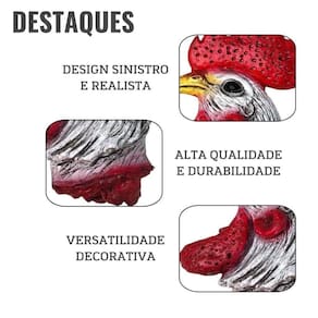 Destaque-se na decoração de Halloween com esta surpreendente Cabeça de Galo. Ideal para festas temáticas ou para assustar os convidados, este produto promete deixar todos impressionados com seu design sinistro e impactante.