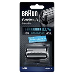 Braun Cabeça de substituição para barbeador elétrico Series 3 Pro Skin - 32B - compatível com barbeadores elétricos 3000s, 3010s, 3040s, 3050cc, 3070cc, 3080s, 3090cc - Marca de barbeador de alumínio nº 1 do mundo - Barbeador elétrico oficial da NFL. Para a série 3 cruzer Clean Shave de nova geração - A cabeça do barbeador deve ser substituída a cada dezoito meses. - Substituir a cabeça da lâmina proporciona um barbear 25% melhor. Para um desempenho ideal; limpe regularmente. - A cabeça de substituição faz com que seu barbeador volte a ter 100% de desempenho e um barbear mais rente. - Serve para os seguintes barbeadores Braun modelo nº séries 3 gamas (340, 370, 390) - As lâminas devem ser substituídas a cada dezoito meses - Para um desempenho ideal, limpe regularmente
