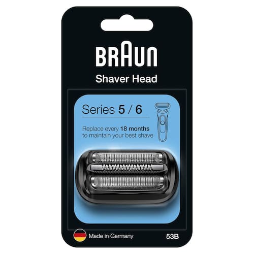 Cabeça de substituição do barbeador elétrico Braun Série 5, cabeçote compatível com a nova geração de barbeadores da série 5/6, 53B, preta - PRÓXIMA E SENSÍVEL: com o sistema SensoFlex que minimiza a pressão desta cabeça de barbear (modelos da série 6) SUBSTITUIÇÃO SIMPLES: conecte facilmente sua nova cabeça de barbear - basta clicar nela - ARTESANATO DE QUALIDADE: 100% fabricado na Alemanha e compatível com as séries 5 e 6 - Compatível com: 6072cc, 6090cc, 6020s, 6040cs, 6075cc, 5018s, 5049cs, 5035s, 5020s, 5050cs.