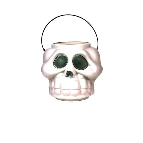 Cabeça Esqueleto Grande da Brasilflex. balde de Plástico com Formato de Uma Cabeça de Esqueleto. ideal Para Decoração de Festa de Halloween. o Balde Mede Aproximadamente 19 X 17 X 17cm (altura).