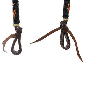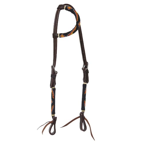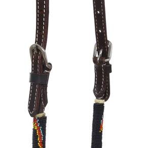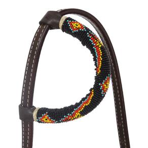 Cabeçada 1 Orelha da marca M Reis, este fabricada em couro de alta qualidade na cor Marrom, possui costuras reforçadas, fivelas de aço inox, detalhes em miçangas e cinquinhos de inervo.