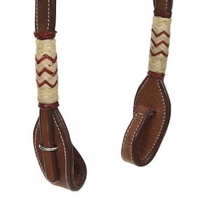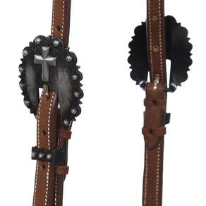 Cabeçada modelo 1 Orelha na nossa qualidade Top Equine, fabricada em couro na cor Marrom com Óleo, possui costuras reforçadas em toda a peça, fivelas de metal totalmente trabalhadas para regulagem e detalhe com inervos na testeira e nas pernas. Uma cabeçada além de bonita é uma peça sensacional e essencial que você não irá se arrepender de ter na hora da sua montaria!