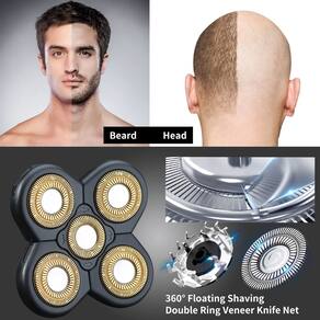 - Cabeça de barbear elétrica flutuante 5D: a cabeça flutuante 5D com corte de 360° pode facilmente se ajustar perfeitamente aos contornos do rosto, cabeça, pescoço e queixo, proporcionando uma experiência suave e confortável.