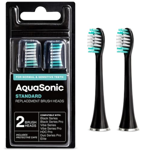 AquaSonic genuíno – As únicas substituições genuínas de cabeças de escova AquaSonic compatíveis com as séries Black, Black Series Pro, Vibe Series e Duo Pro. - Cabeças de escova de substituição: Compatível com as seguintes alças de escova de dentes: Black Series, Black Series Pro, Vibe Series, HDC Pro, Duo Series Pro e Elite. Obtenha o melhor desempenho da sua escova de dentes AquaSonic escolhendo cabeças de escova de substituição AquaSonic autênticas. Estas cabeças de escova padrão projetadas pela DuPont são curvas para contornar a superfície do dente, enquanto as cerdas afuniladas limpam efetivamente entre os dentes e ao longo da linha da gengiva. - Alta qualidade: feitas de materiais de alta qualidade, nossas cabeças de escova apresentam cerdas suaves nos dentes e gengivas, mas eficazes na remoção de placa bacteriana e tártaro. Eles também são fáceis de substituir, tornando simples garantir que você obtenha o melhor desempenho de limpeza da sua escova de dentes AquaSonic. - Recomendações: Substituir a cabeça da escova é fácil e leva apenas alguns segundos, garantindo que sua escova de dentes AquaSonic permaneça em ótimas condições. Troque a cabeça da escova a cada 3 meses para um desempenho ideal de escovação. Troque a cabeça da escova antes se desgastar. Certifique-se de enxaguar bem as cerdas após cada uso. - Marca confiável: a AquaSonic é uma empresa sediada nos EUA que é reconhecida como líder confiável e acessível em tecnologia de higiene bucal. Desde nossas escovas de dentes elétricas até nossos irrigadores bucais, nossos produtos receberam dezenas de milhares de avaliações elogiando nossa qualidade e dedicação ao atendimento ao cliente. - O que vem na caixa: 2 cabeças de escova de substituição padrão em preto.