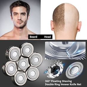 - Cabeça de barbear elétrica flutuante 7D: esta cabeça de barbear careca flutuante 7D atualizada tem uma área de contato maior com um barbear de 360° e pode facilmente se ajustar perfeitamente aos contornos do rosto, cabeça, pescoço e queixo, proporcionando uma experiência suave e confortável. Mark: Não serve para barbeador de caveiras de pitbull.