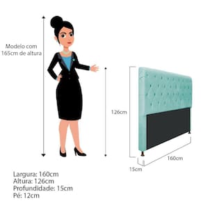 A Cabeceira Cristal é perfeita! Ela agrega sofisticação ao seu quarto e com seus detalhes em capitonê e seu tecido de alta qualidade, faz com que sua decoração fique impecável! Especificações Técnicas da Cabeceira Estofada Cristal: - Altura: 126 cm; - Largura: 160 cm; - Profundidade: 11 cm; - Peso: 20 kg. Diferenciais da Cabeceira Estofada Cristal: - Material da Estrutura: fabricado com Madeira Pinus e Eucalipto Reflorestada, e alguns detalhes em MDF; - Detalhes do Tecido: possui detalhes em Capitonê, onde os botões são revestidos no mesmo tecido do produto e finalizados com excelente acabamento; - Detalhes dos Pés: acompanha kit de pés (2 pés) com alta resistência; - Volumes: nessa compra você receberá um único produto. Recomendações de limpeza: -Limpar com flanela limpa e seca. Não molhar o móvel e não expor em lugar úmido ou próximo de fontes de calor. Não usar produtos abrasivos. Observações Importantes: - As imagens ambientadas são meramente ilustrativas e podem apresentar itens que não compõe o produto; - Objetos decorativos que aparecem na foto não acompanham o produto; - As cores do produto podem variar de acordo com o monitor, a iluminação do ambiente, ou sua percepção visual; - A Cabeceira Estofada Cristal chegará montada para você, bastando rosquear os pés; - Confira as dimensões antes da compra e certifique-se de que o produto passará por elevadores, portas e corredores, já que nossa entrega não inclui a subida de lances de escada, ou o lançamento de produtos; - Ao receber seus produtos, verifique no ato do recebimento qualquer dano na embalagem. Caso tenha alguma avaria, favor não assinar o comprovante de recebimento (A transportadora tem obrigação de esperar a conferência); - Produto para uso residencial em ambiente interno, não devendo ficar exposto diretamente ao sol, calor e umidades excessivas.