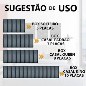 Dimensões para você montar a sua cabeceira exclusiva: Solteiro 1,00x0,60cm 5 módulos Casal 1,40x0,60cm 7 módulos Queen 1,60x0,60cm 8 módulos King 2,00x0,60cm 10 módulos