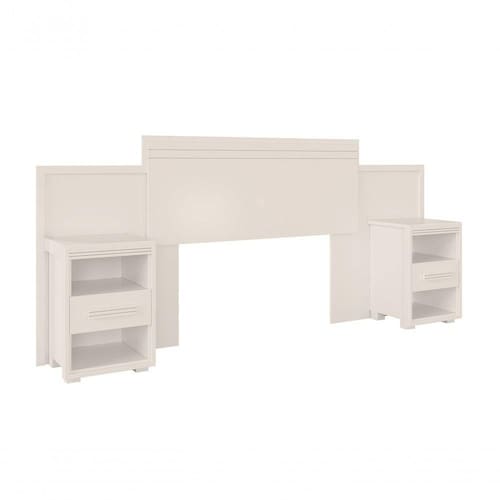 Esta cabeceira de design moderno traz um toque de simplicidade refinada ao seu dormitório. Fabricada em MDF 100% resistente, ela inclui prateleiras laterais com gavetas e um tampo de 20mm de espessura para maior durabilidade.