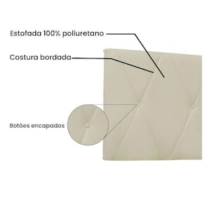 Este móvel é feito a partir de madeira industrializada, com materiais de primeira linha e botões forrados costurados junto ao tecido, com revestimento de espuma D-23, que promove muito mais conforto. Se você é daqueles que gosta de passar horas sentado na cama, não precisará mais se apoiar na parede fria! Esta peça irá te proteger e te aquecer todos os dias e além de tudo personalizar seu cantinho!