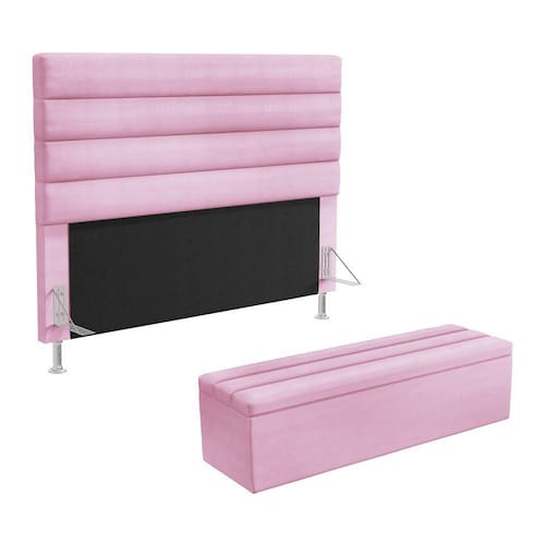 Cabeceira Atlas e Calçadeira Ursa 140 Sued Aradecor - Rosa Claro