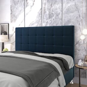 Características do Produto: Madeira de eucalipto proveniente de reflorestamento Fixação com grampos galvanizados Espuma Poliuretano D20 Revestimento: Veludo Cor: Azul Marinho Tamanho: King para cama box de 193 cm Possui pés: Sim Tipo de pés: 2 pés PVC de 12 cm Possui detalhes em quadriculado Embalagem: plástico bolha, papelão ondulado, malha, plástico Fixação diretamente no box através de frames Garantia de 3 meses contra defeitos de fábrica.