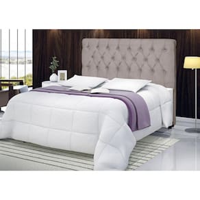 Ela é feita para cama box de casal 158 cm, além de possuir revestimento em tecido de pena e frame para fixação.
