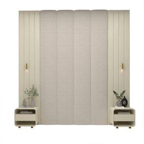 O Conjunto Cabeceira Magnífica foi criado para transformar o quarto em um ambiente sofisticado, funcional e acolhedor. Composto por uma elegante cabeceira com tecido em Linho claro, dois painéis Majestade que valorizam a composição, duas mesas de cabeceira Innova com corrediças telescópicas que garantem suavidade e praticidade no uso diário, além de um kit com duas luminárias integradas ao painel, o conjunto oferece conforto, organização e um toque de modernidade. Ideal para quem busca design, aconchego e funcionalidade em cada detalhe. Produto Montado: Sim Acabamento da Mesa de Cabeceira: Pintura Acabamento dos Pés: Pintura Altura dos Pés: 5 cm Altura Máxima dos Pés: 5.0000 Ambiente Principal: Quarto Cabeceira Estofada: Sim codigo_ean: 7900288332219 Complexidade da Montagem: Média: pode ser montado por mais de uma pessoa e/ou necessite de maior conhecimento para montagem Cor: Natural Claro/Off White Cor do Produto: Natural Claro/Off White Cor Flex: Não Densidade da Espuma: D-28 Escala de Brilho: Fosco Escala de Brilho da Mesa de Cabeceira: Brilhante Extensível: Não Fixação Box: Não Fixação na Parede: Sim Informações Complementares: Acompanha 2 Placas Ripadas 046 Majestade + 02 Luminárias. Itens Inclusos: 1 Cabeceira, 2 Mesas de Cabeceira, Kit Ferragens e Manual de Montagem Largura do Colchão Indicado: 193cm Linha ou Coleção: Magnífica/Innova/Majestade Manual de Especificação Técnica: https://product-hub-prd.madeiramadeira.com.br/899776804/documents/47e9ce46-66e2-455e-a9b5-8de23fdf1eee339669855017713340154923.pdf Manual de Montagem e Instalação: https://product-hub-prd.madeiramadeira.com.br/899776804/documents/2dddc2c9-e5cc-44c1-861e-aee51041a617339669755017713340131327.pdf Marca: Gelius Móveis Material da Mesa de Cabeceira: MDF Material dos Pés: Madeira Maciça Material Principal: MDF Montagem Flex: Não Necessita Montagem: Sim Origem do Produto: Nacional Peso: 126 kg Possui Baú: Não Possui Espelho: Não Possui LED: Não Possui Mesa de Cabeceira: 02 Possui Pés: 08 Possui Rodízio: Não Possui Possui Vidro: Não Recomendações de Uso, Manutenção e Limpeza: A limpeza do produto deve ser feita por meio do uso de um pano, umedecido com água, e um pano seco. É importante para fazer a limpeza do móvel nunca utilizar produtos químicos ou abrasivos. Para conservar o padrão de qualidade dos produtos Gelius, nunca arraste um móvel se este estiver cheio. Nunca puxe o móvel de frente para você, pois ele pode balançar e provocar acidentes. Sapatas Niveladoras: Não Sistema de Montagem: Convencional: parafusos, pregos, cavilhas, etc. Tipo de Colchão: Queen Tipo de Madeira Maciça dos Pés: Pinus