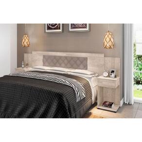 Cabeceira Box Bruna Amarula com Capitonê Bege Claro