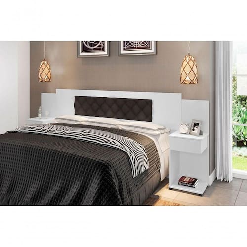 Cabeceira Box Bruna Branco Com Capitonê Marrom Cabeceira Box Bruna Branco com Capitonê Marrom