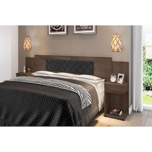 Cabeceira Box Bruna Chocolate Com Capitonê Preto Cabeceira Box Bruna Chocolate com Capitonê Corino Preto