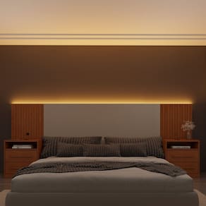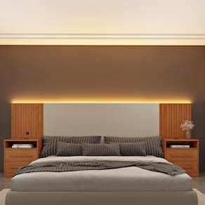 Com um elegante painel ripado e puxadores em MDF, a cabeceira se adapta a qualquer decoração. A iluminação LED em cor quente cria uma atmosfera aconchegante, enquanto as entradas USB permitem carregar seus aparelhos com total comodidade.