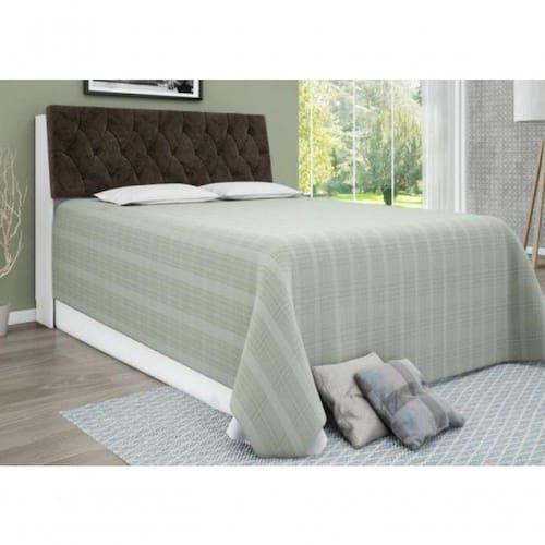 Cabeceira Box Casal Queen Isis Branco Com Capitonê Marrom