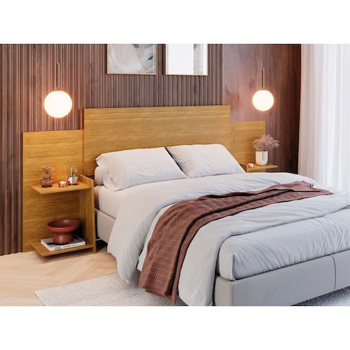 Cabeceira Grécia vem trazendo discrição ao ambiente, porém não deixa de agregar charme e elegância trazendo identidade para o quarto com sofisticação. Mesa de cabeceira com prateleiras embutida para acomodar objetos de necessidade pessoal.