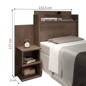 Cabeceira Box Solteiro Austin Mesa de Cabeceira Chocolate A Cabeceira Box Solteiro Austin Mesa de Cabeceira possui um design moderno e elegante. Com duas prateleiras q ajudam na sua organização, podendo deixar seus objetos. Feita em MDP, sendo mais resistente e duradoura. Possui uma Mesa de Cabeceira, auxiliando em sua organização. Informações do Produto: Altura: 117 cm Largura: 131,5 cm Comprimento: 23 cm Informações Adicionais: Material: MDP Altura do vão: Prateleiras: Sim (2) Ideal para Colchão de: 88 x 188 cm (Solteiro) Pés: Não Cor: Chocolate Mesa de Cabeceira: Sim Itens Inclusos: 01 Cabeceira. 01 Mesa de Cabeceira. Kit completo para montagem e manual de instruções. Informações complementares: - Fotos meramente ilustrativas do produto no ambiente. - Os objetos que ambientam as fotos não acompanham o produto; - Verificar descrição e tamanho do produto antes da compra. - Avaliar a mercadoria no ato do recebimento e recusar em caso de divergência ou avarias. - Mantenha as informações de contato e endereço de entrega atualizados para entrarmos em contato caso necessário. - Limpar com flanela ou pano macio seco, não utilizar produtos abrasivos, desengordurantes, álcool ou solvente. Não expor o produto diretamente à luz solar e à umidade. * Sugerimos a contratação de um montador profissional para a montagem do produto. Não nos responsabilizamos por avarias causadas no ato da montagem. * Não nos responsabilizamos pela montagem e desmontagem do produto no ato da entrega e devolução, assim como os custos gerados nestas situações. * A transportadora entregará o produto no andar térreo do endereço de entrega. * Não nos responsabilizamos por subir escadas, corredores e elevadores ou transporte por guincho em apartamentos.
